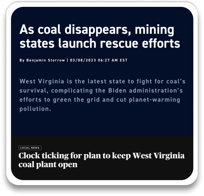 Renewable energy like solar, wind turbines, etc, has put a real damper on the coal industry.